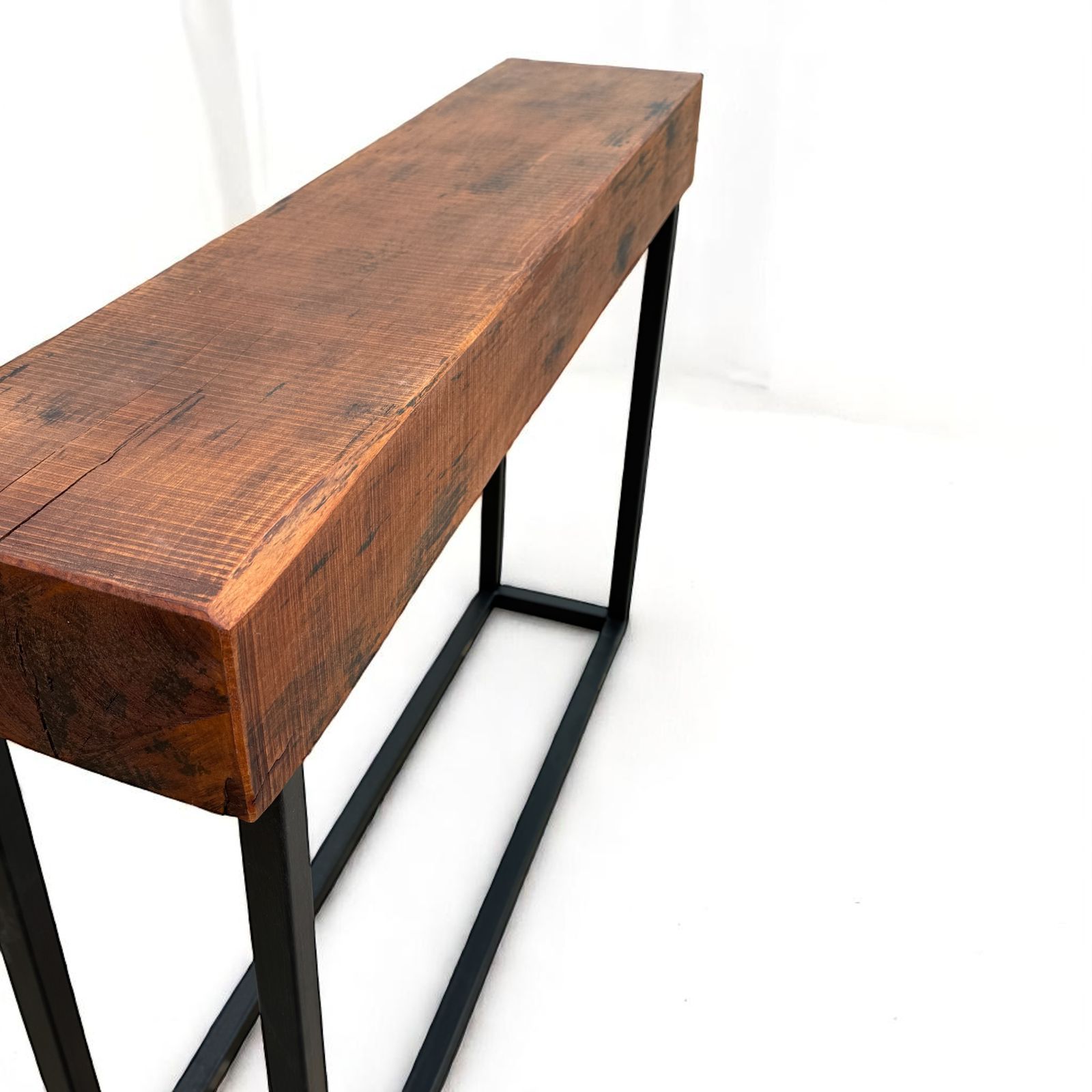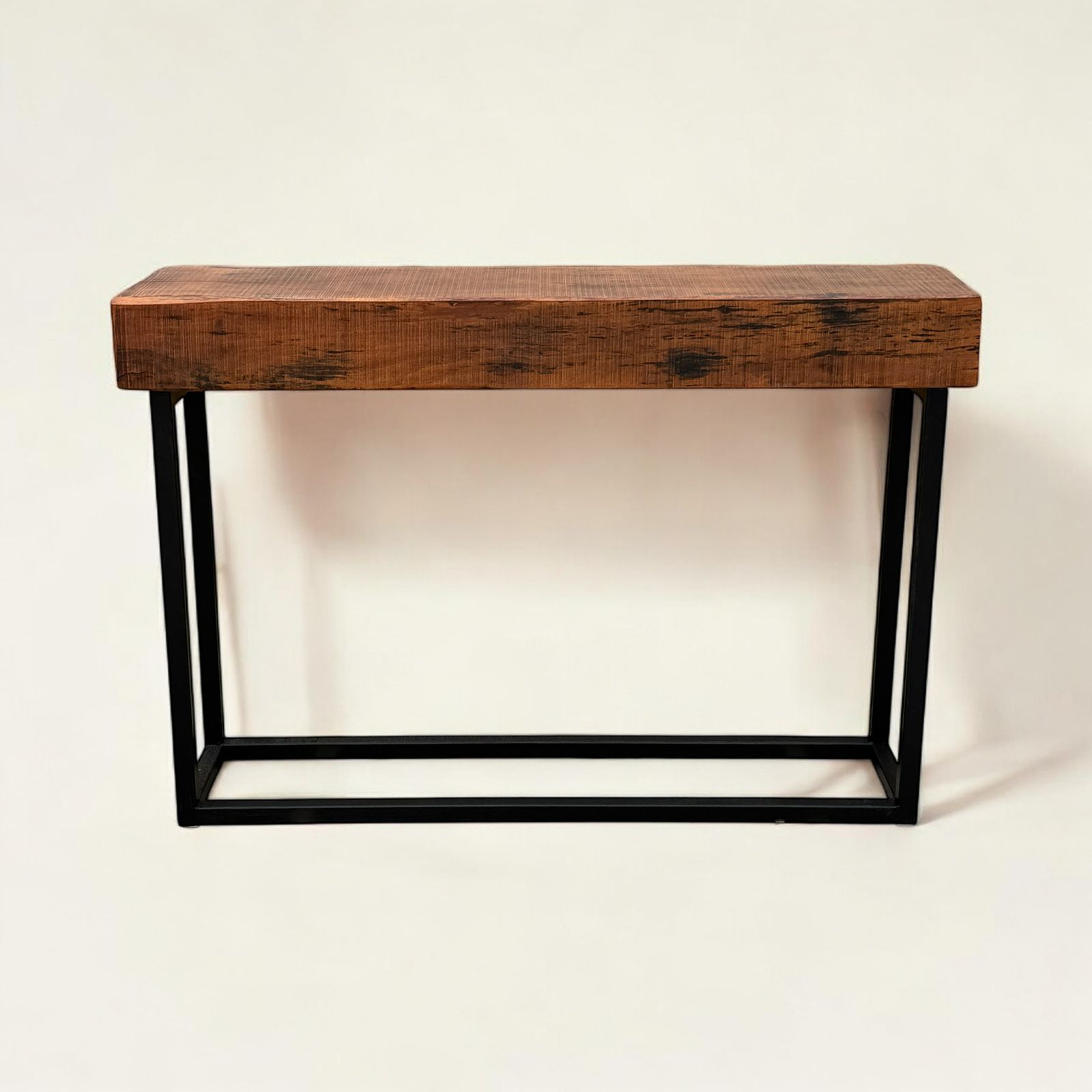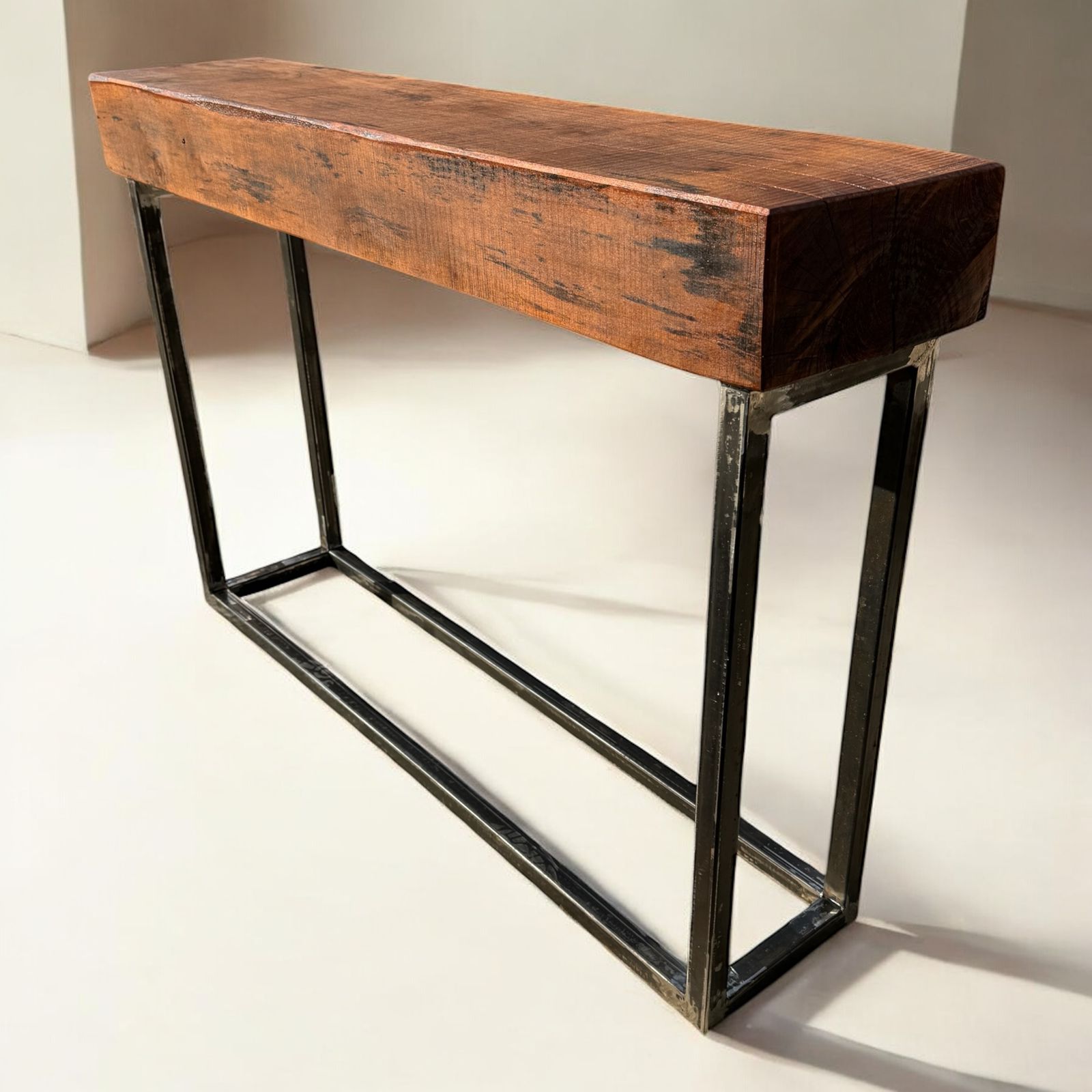 Agrega carácter industrial y elegancia natural con nuestra consola de acero y madera maciza