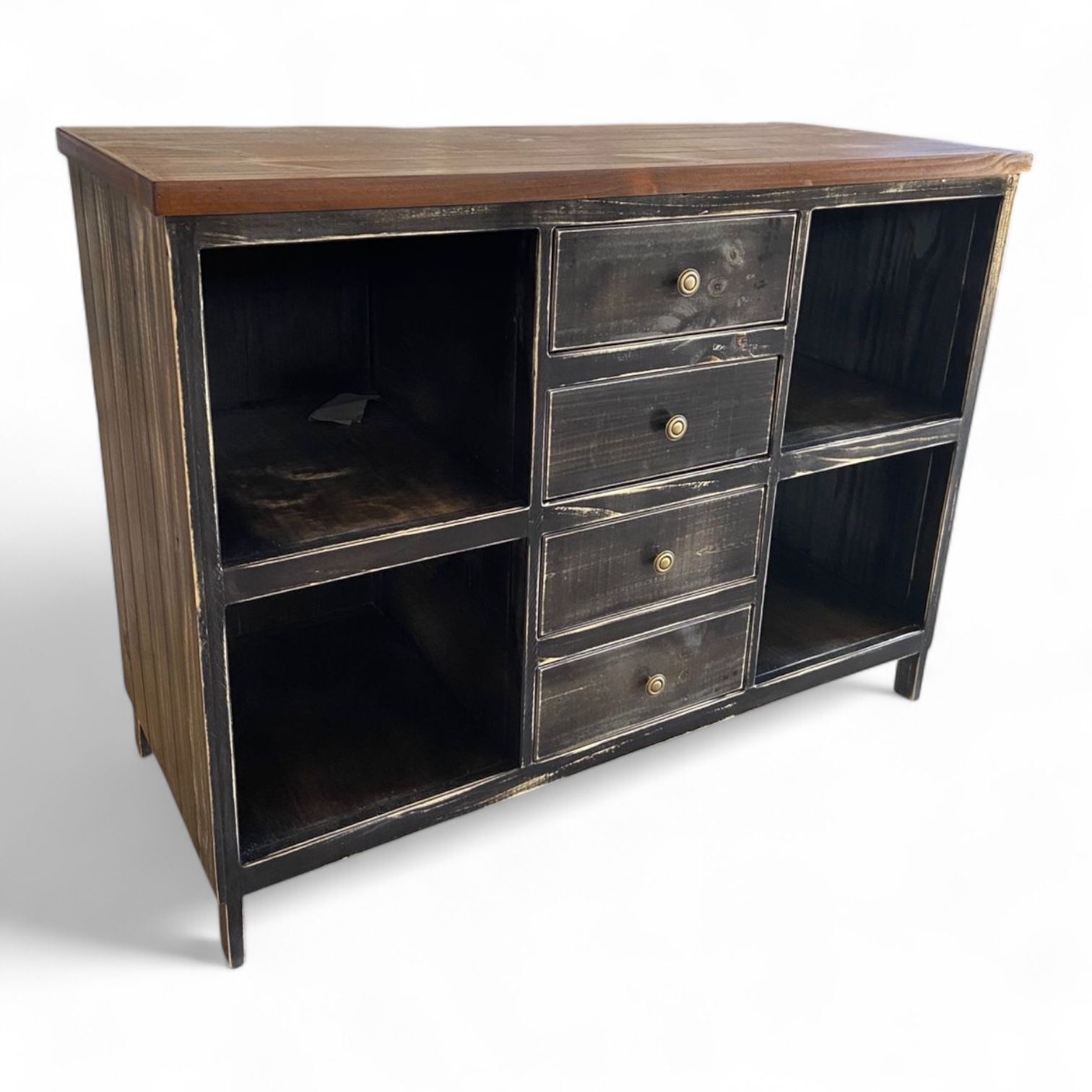 Elegancia rústica y almacenamiento práctico: Buffet de 4 cajones en madera gris decapado
