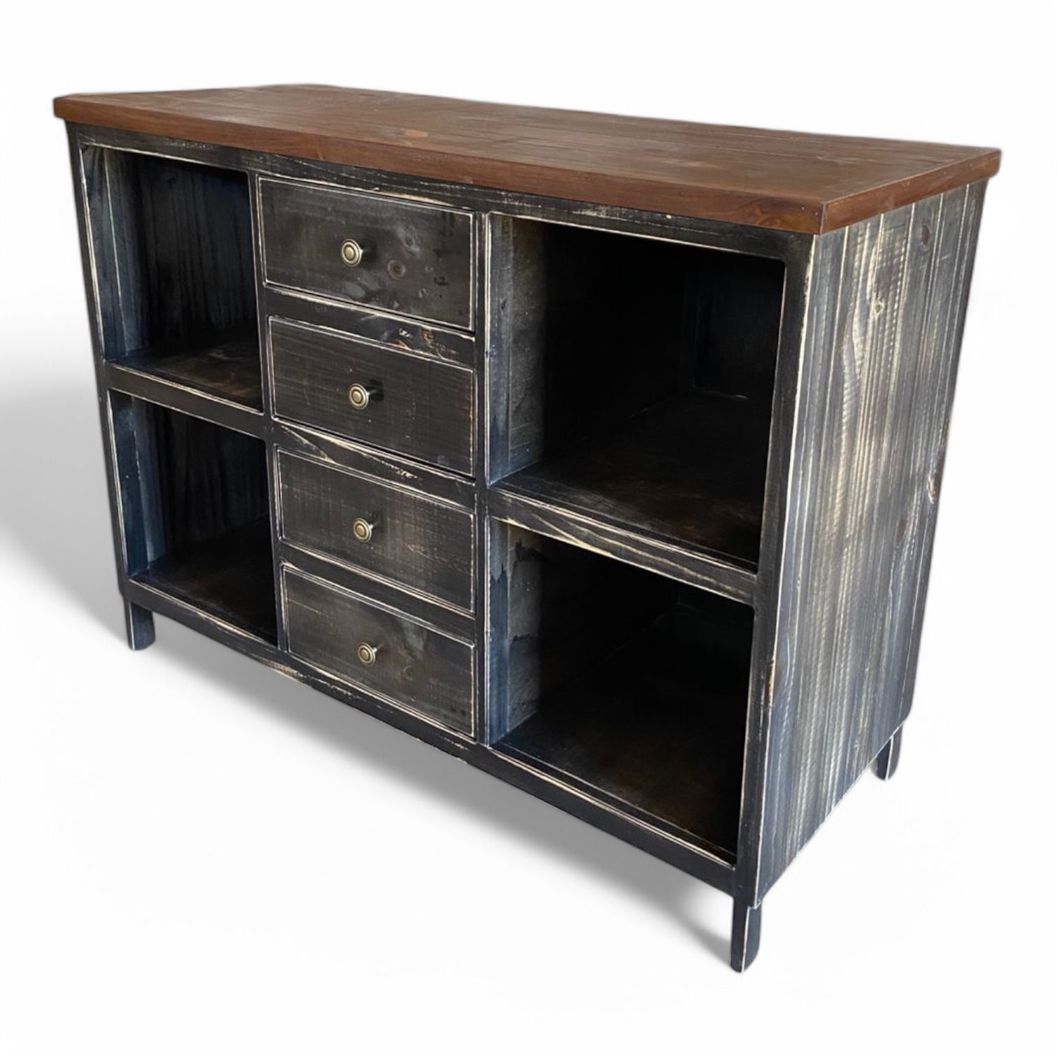 Buffet Rústico de Madera con 4 Cajones – Gris Decapado y Cubierta color Nogal