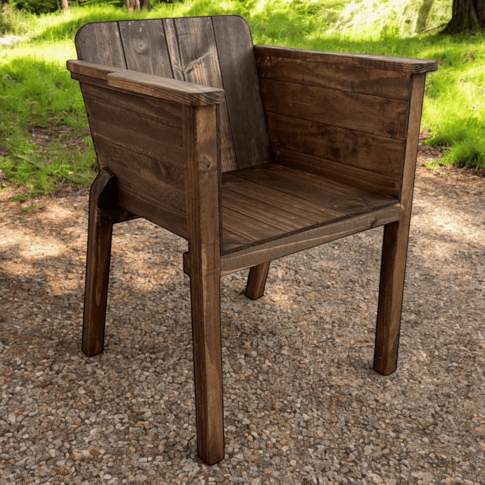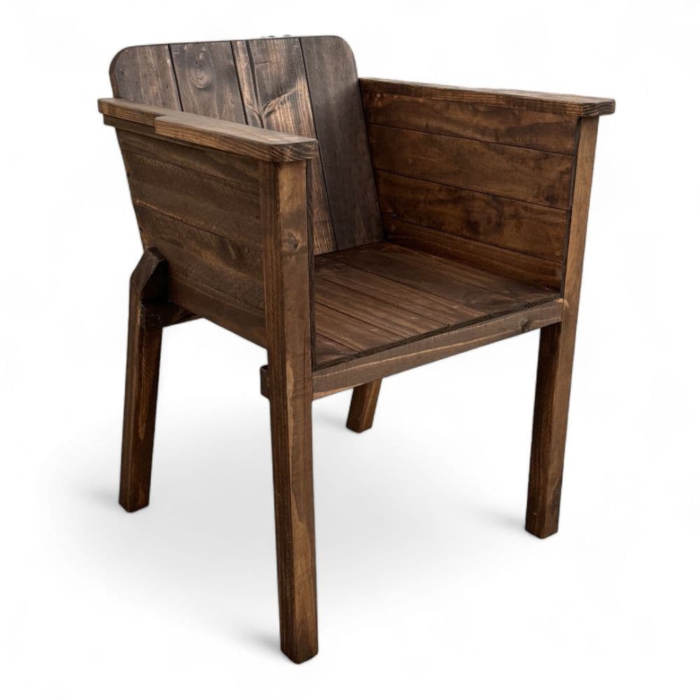 Añade elegancia y robustez a tu espacio con este sitial rústico fabricado en madera de alta calidad y acabado en nogal oscuro, que realza las vetas y texturas naturales de la madera, aportando calidez y sofisticación.