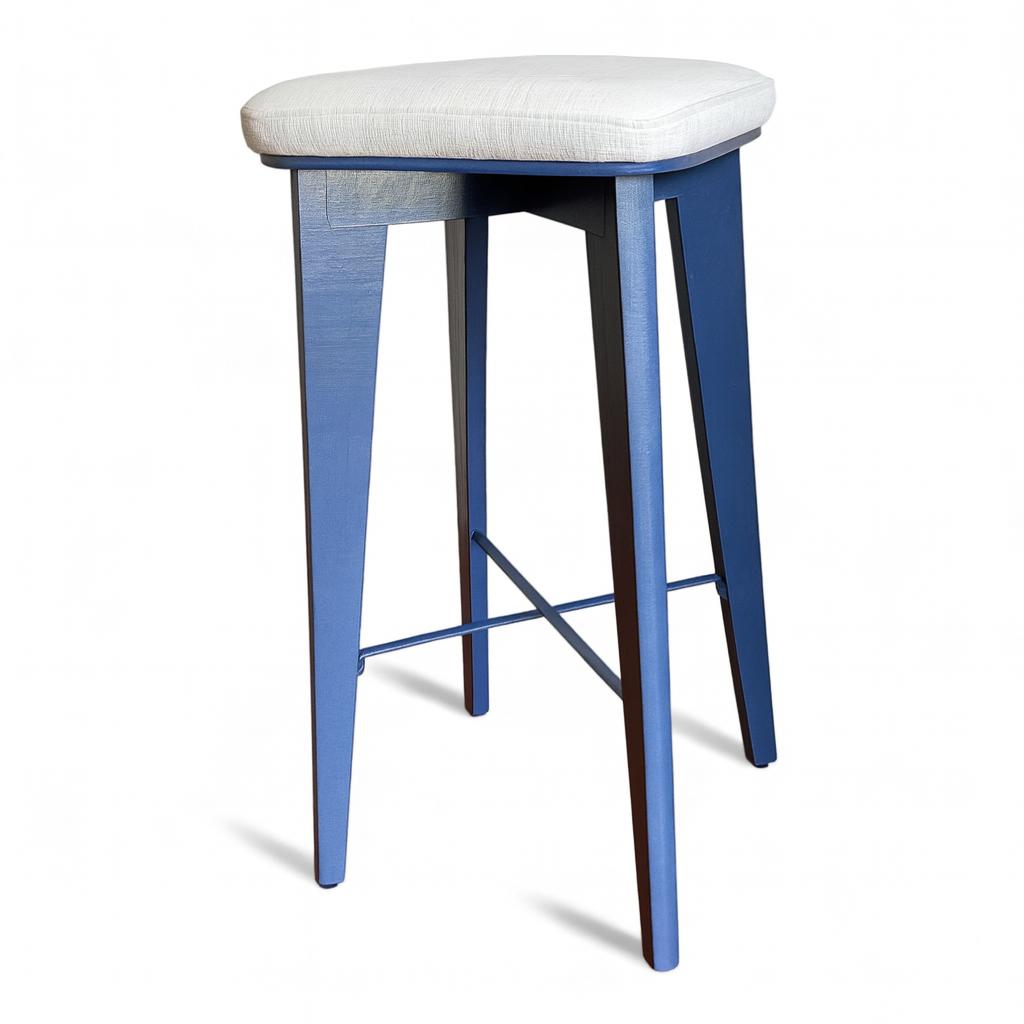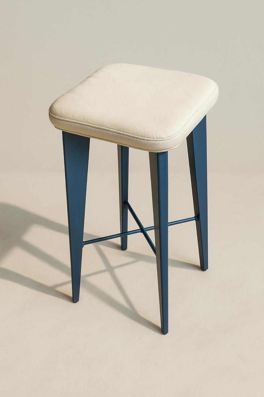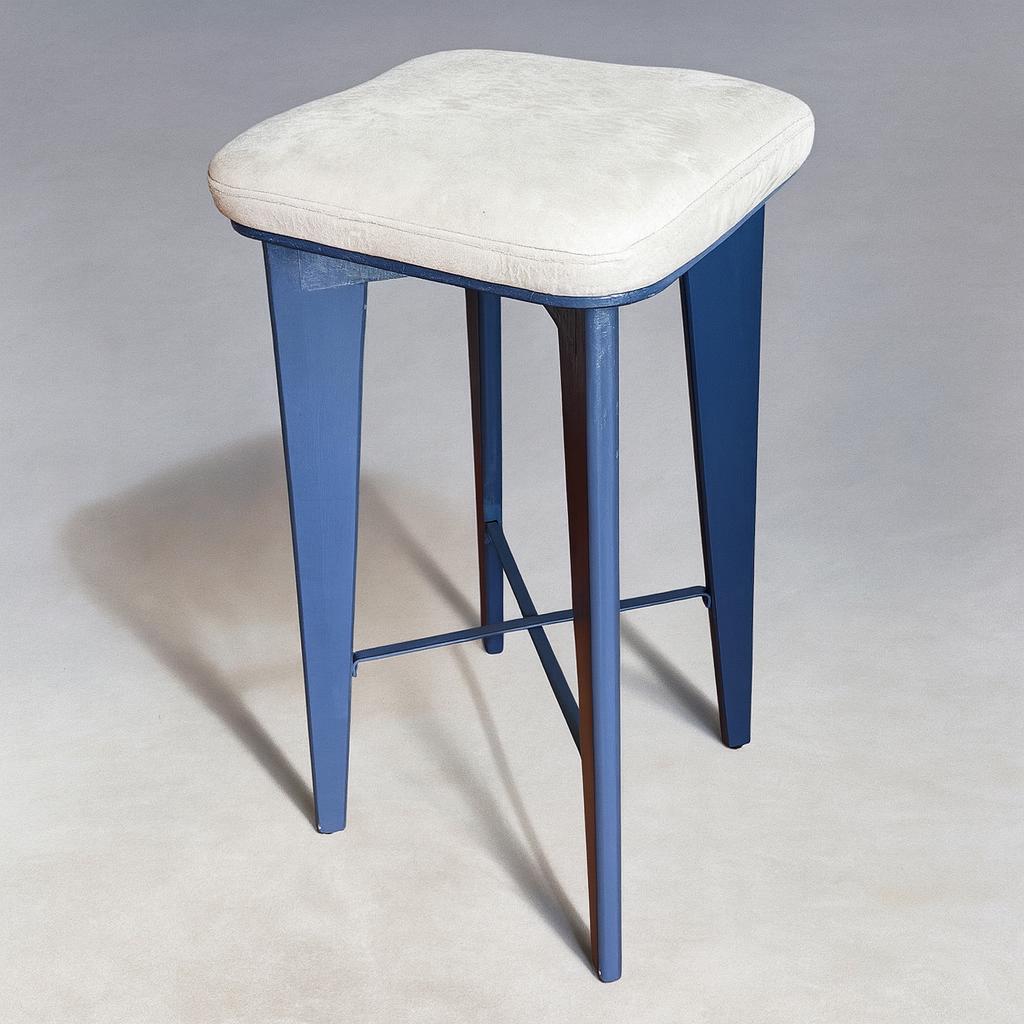 Taburete rústico industrial con asiento tapizado en eco cuero color blanco